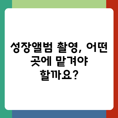 지금까지 성장앨범 촬영을 똑똑하게 준비하는 방법에 대해 자세히 알아봤습니다. 꼼꼼한 준비와 세심한 배려를 통해 아이의 소중한 성장 과정을 아름답게 기록해 보세요. 이 글이 여러분의 성장앨범 촬영에 도움이 되었기를 바라며, 여러분의 소중한 추억들이 아름다운 앨범으로 영원히 간직되기를 응원합니다. 궁금한 점이나 추가적으로 필요한 정보가 있다면 언제든지 댓글을 남겨주세요. 함께 소통하며 더욱 알찬 정보를 나누도록 하겠습니다!